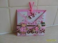 Ik kwam vanmiddag thuis en in de brievenbus zaten 2 grote enveloppen. Het was het verrassingspakket van de candy van Karin Versteeg. Nou, een verrassing was het hoor. Wat een prachtig pakket heb ik van Karin!! Er zat echt heel veel in. Ik heb buiten, heerlijk in het zonnetje, de enveloppen uitgepakt. En ik kan je vertellen dat was genieten hoor.. en dan heb ik het niet over het zonnetje maar over al die prachtige spullen.